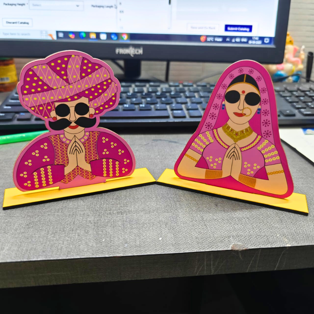 Bring the charm of Rajasthani culture into your home or craft projects with this set of 2 MDF Couple Cutouts. Expertly crafted from durable MDF, these detailed silhouettes capture the elegance and tradition of Rajasthani attire, adding a unique artistic touch to any space. Ideal for decorating, painting, or personalized gifts, they inspire creativity while celebrating heritage. Make your decor stand out with these beautiful, culturally rich cutouts.